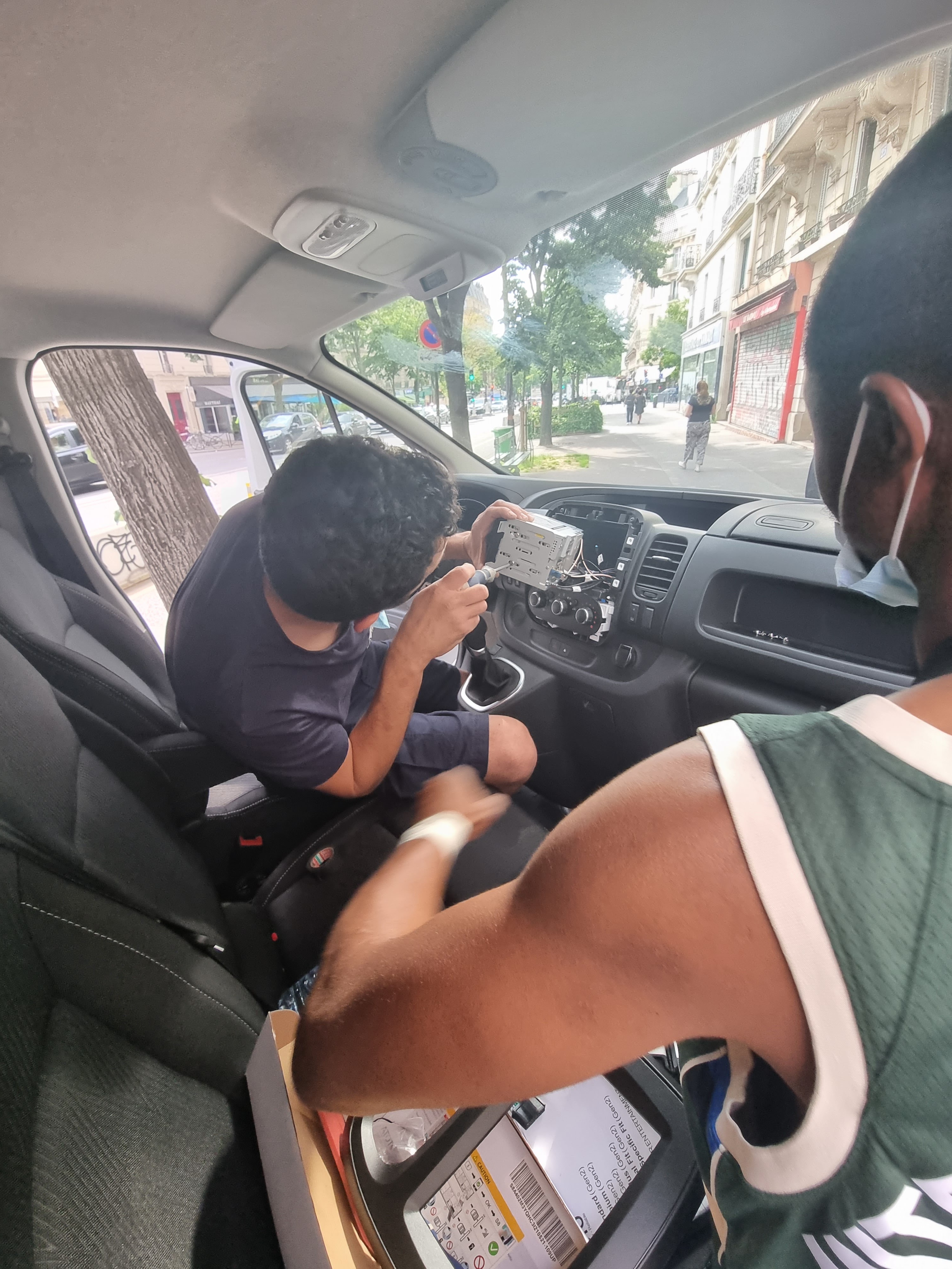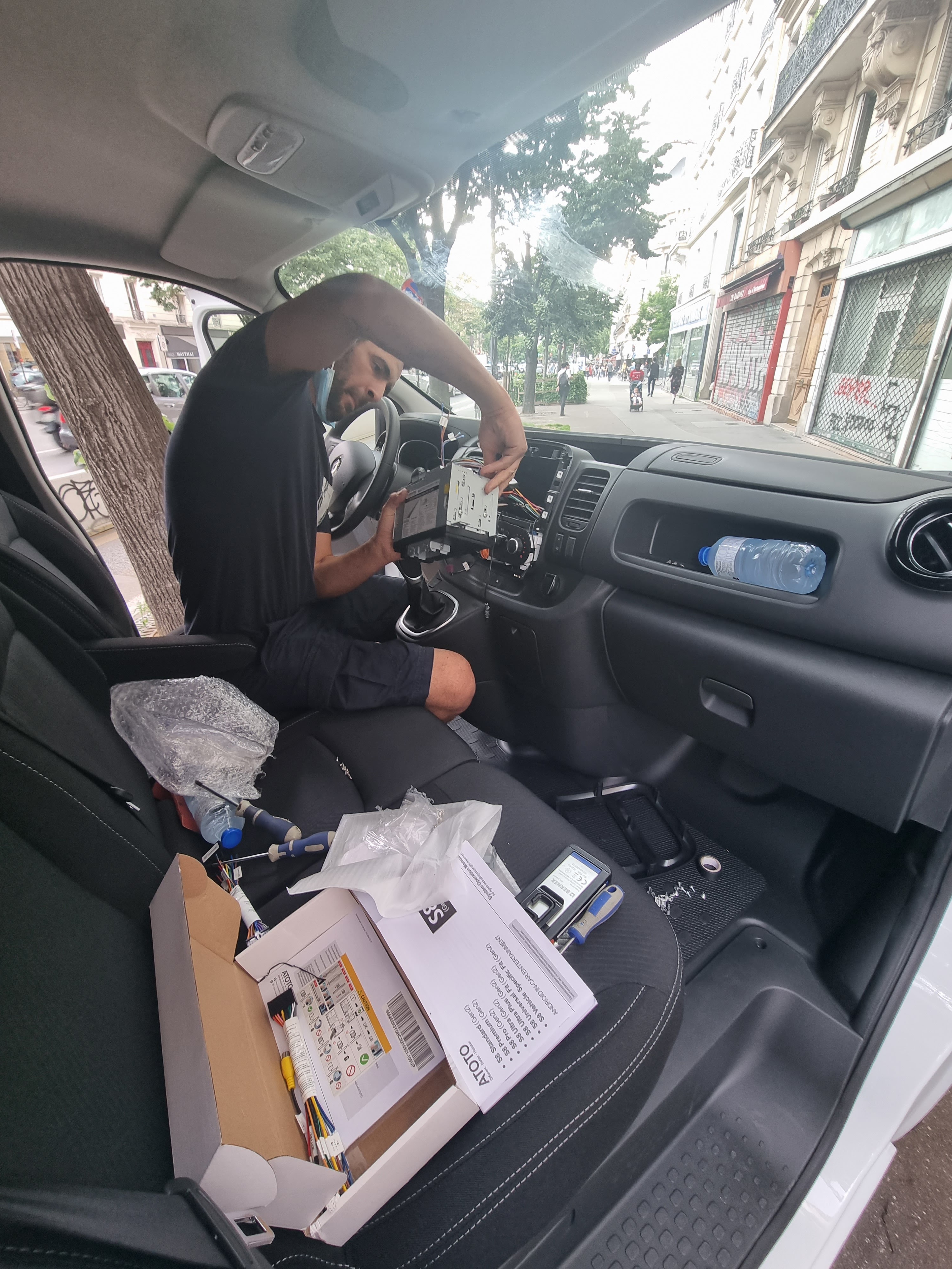 Pose d'un autoradio Android chinois. Équipe technique compétente. 100 euros de main d'oeuvre et 30 pour l'interface.