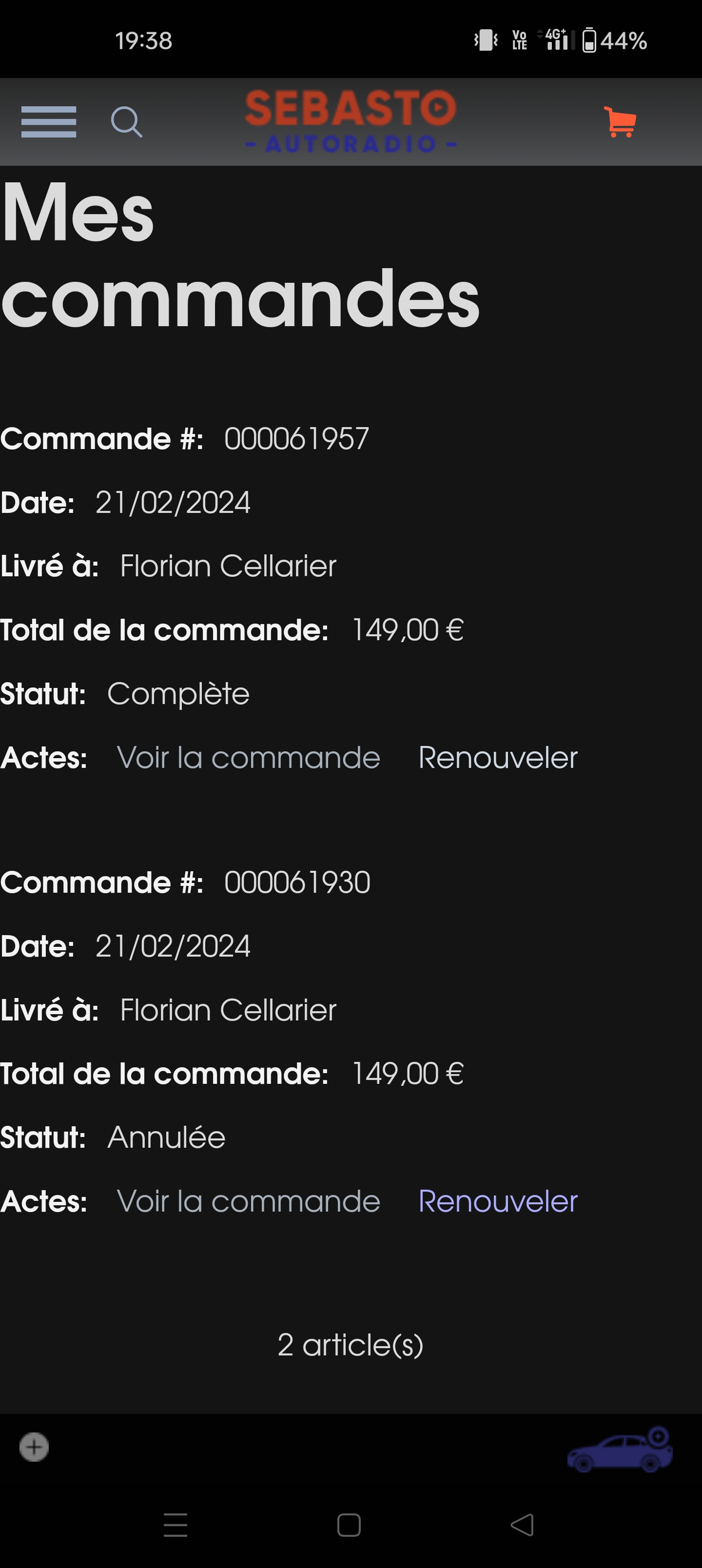 Sebasto ne commander surtout pas sur ce site, je raconte mon expérience en restant objectif, je met 1 étoile pasque je suis obligé sinon c 0. Commande passé le 10/09 après avoir vue bêtement sur le site commande livrée entre 2 et 6 jours, je rappelle 8 jours après on me dit que mon autoradio sebasto la recever le lendemain et que j'était prioritaire je vois sur mon compte colis remis au transporteur le 22 pas de colis sebasto me dis qu'il en recoit le 30 septembre mais rêve ou il m'ont qu'il ont envoyé bref bellle equipe de rigolo pour une autoradio à 350€ autant voir un vrai professionnel. Du coup remboursement en espérant ne pas être remboursé en 2021